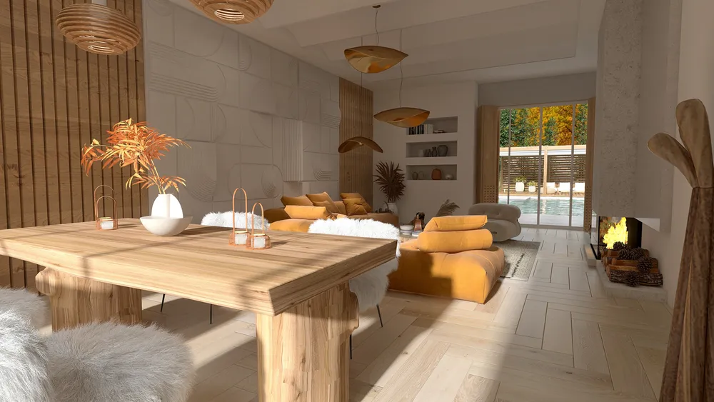 Vivienda que consta de salón comedor , cocina, aseo ,dormitorio, vestidor y baño en planta baja. Dormitorio de invitados ,vestidor y baño en planta superior, Amplia zona exterior con piscina.