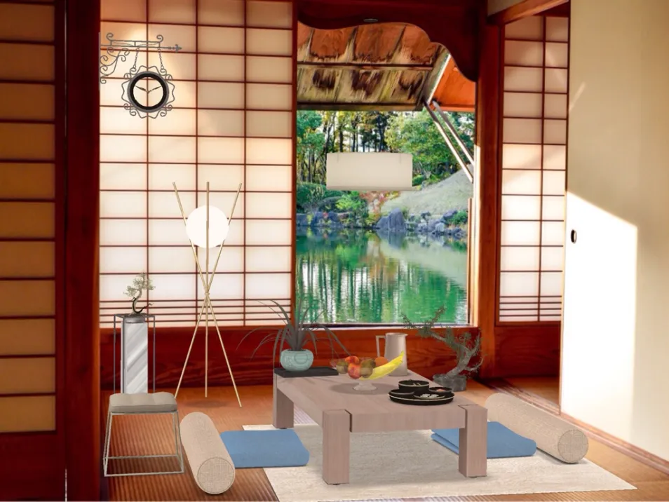 This room is for the #AsianStyleContest...I made this into a Traditional Japanese style Dining Room...I used a short table for the floor to use pillows to sit on just like my anime types...I used some plants because they really contrast with the colors...I chose this room because It has a beautiful scenery and flooring....Please like and comment this design!!!