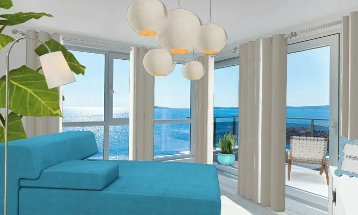 La mejor vista es hacia el mar. solo un toque de color en el mueble