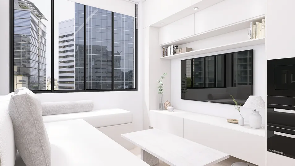 VIVA30 is an innovative interior design project that transforms 30m² into a multifunctional, elegant, and optimized space. The design prioritizes versatility, integrating bedroom, dining, and kitchen areas into a single, seamless environment. With smart storage solutions and modular furniture, the space adapts to daily needs. The bathroom is discreetly hidden behind a closet door, maintaining privacy and a clean aesthetic. VIVA30 maximizes every inch, redefining small-space living with style and functionality.