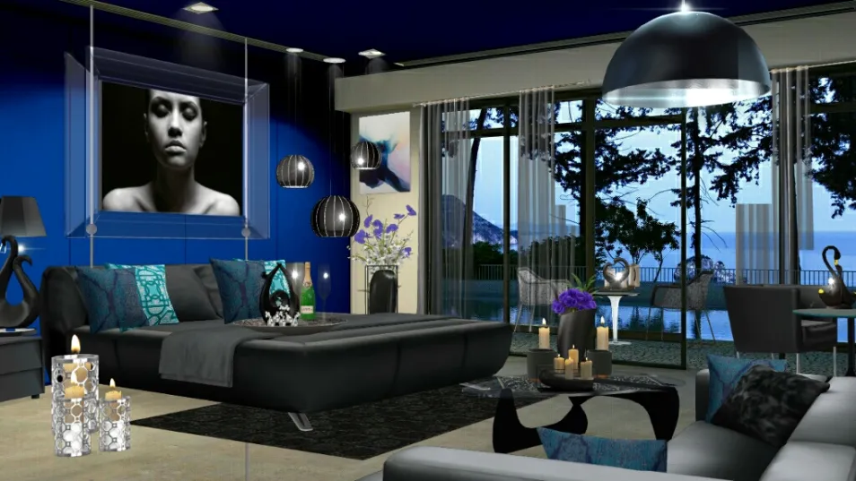 when the serenity of twilight joins the passion of night, that's when emotions take a deeper turn. This twilight blue shade of wall and interior speaks it all. let the eyes speak and heart listen to what this night is going to say.. 💜💕