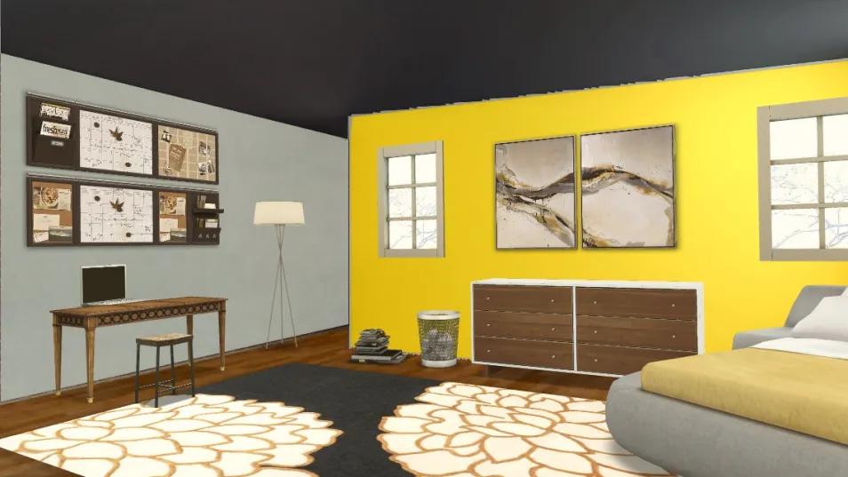 Yellow is my favorite color! This isn't my dream room, but I'm still happy with it. It's a mix of bright and dark colors.