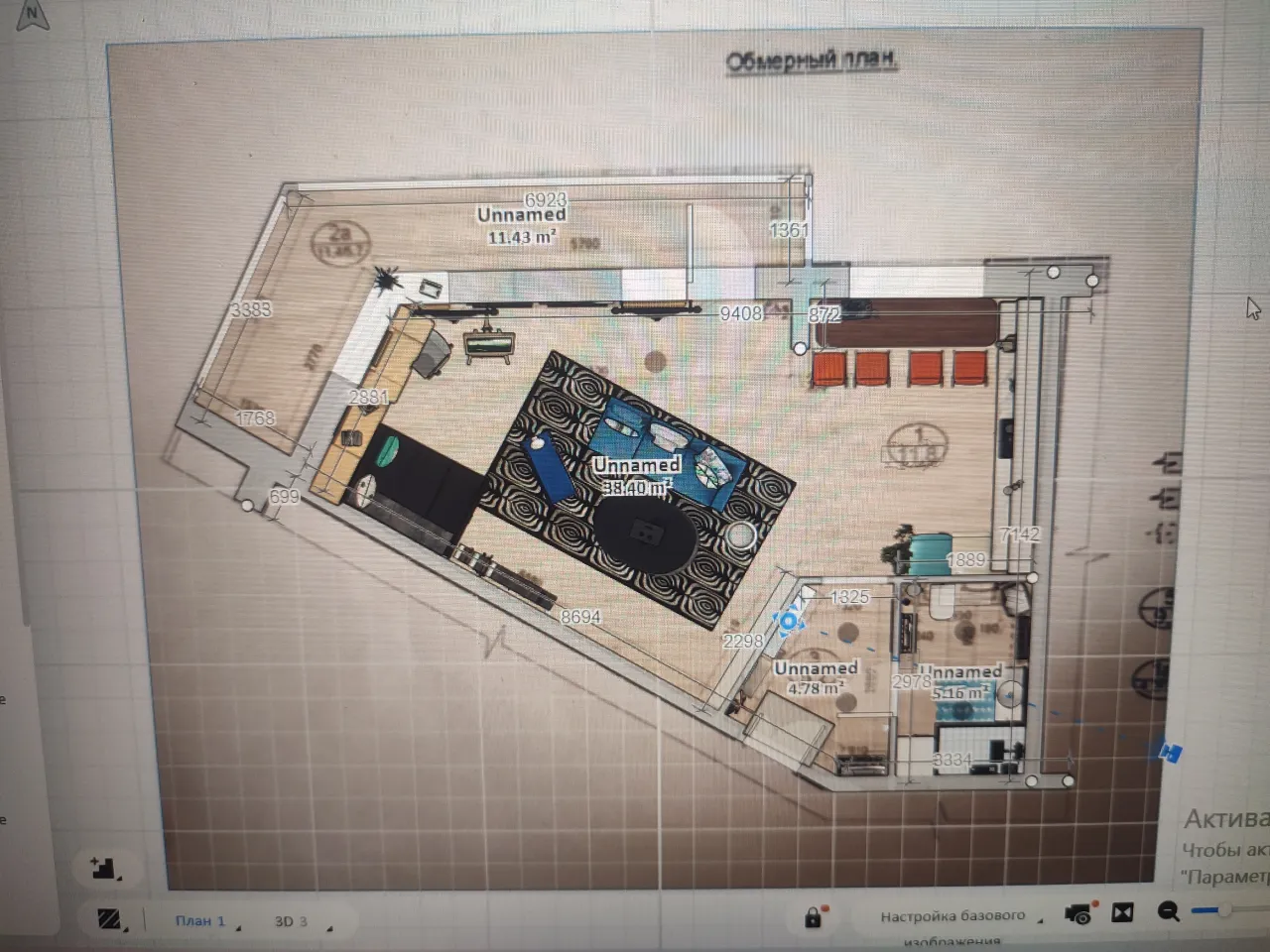 Путь следующий: нажимаем следующую кнопку за ЗАМОЧКОМ -- Настройки фона -- в открывшемся окне убираем галочку на слове ДИСПЛЕЙ. Если галочка стоит -- подложка с планом отображается, если ее убрать, то исчезает! Разобралась методом тыка.
