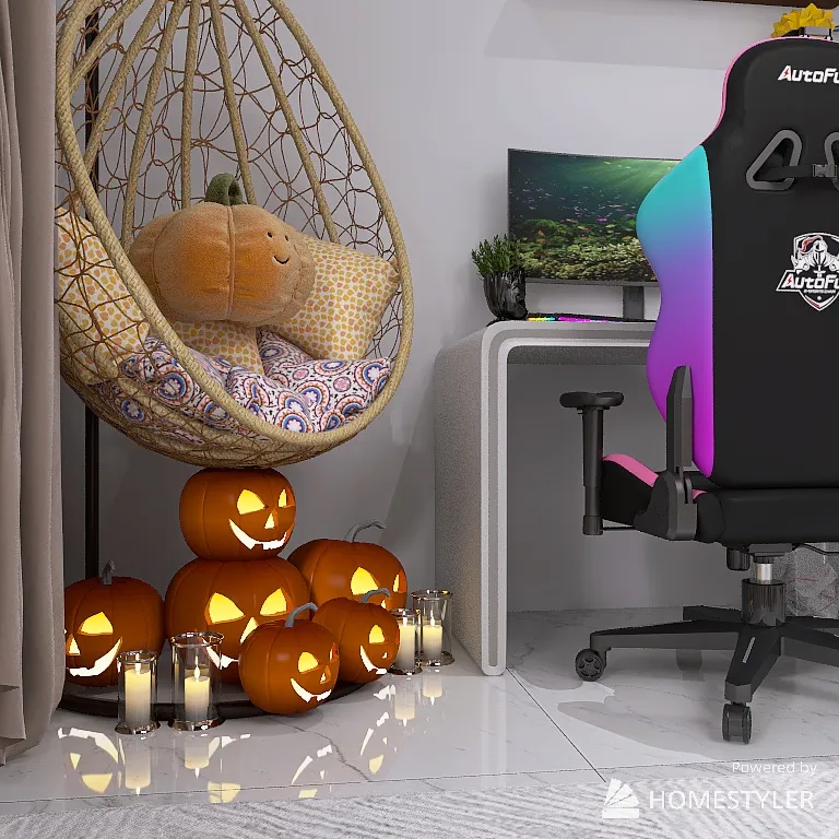 I always wait for Halloween just to redesign my room’s decor and add a little more scary and warm character to it. I loved using the orange color, which reminds me of autumn, the season closest to my heart.